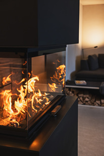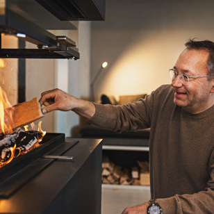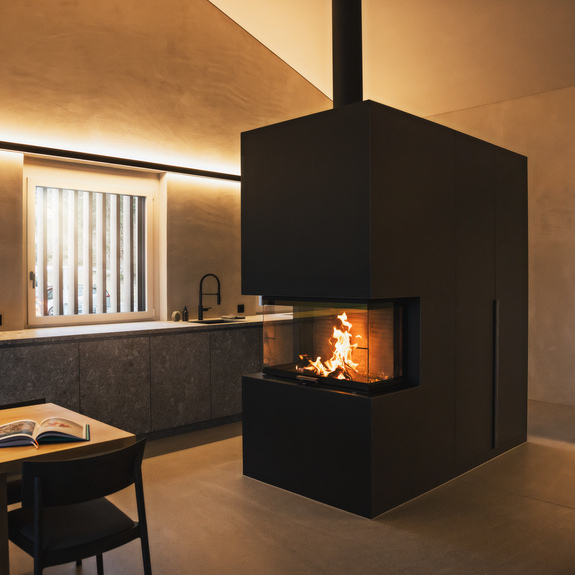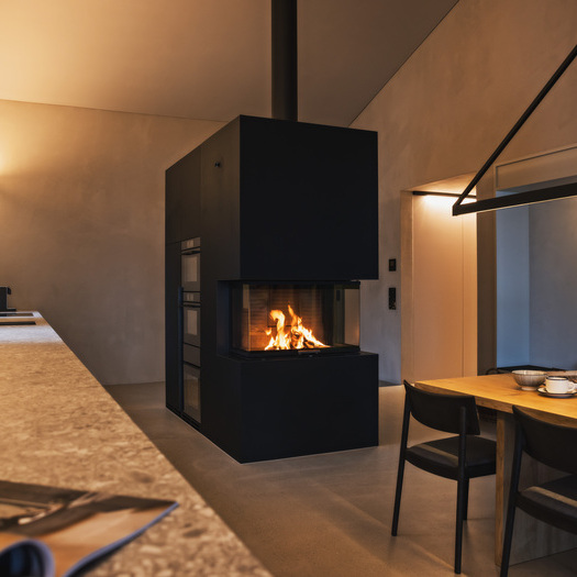 «The architect, Claudio Holdener, and I had a wood stove on a side wall in the living room in mind and during our visit to the showroom in Cham, these stoves were the main topic», says Guido Heinrich, «until Erwin Hauenstein, founder of Attika, suggested that we also take a look at the VISIO 3 L fireplace.»