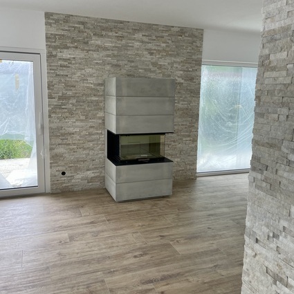 VISIO 3 ELEMENT is a three-sided VISIO fireplace insert clad with prefabricated element blocks and a supporting frame. VISIO 3 ELEMENT is installed in the living room like a stove and connected to the fireplace. The construction work is minimal. After installation, the element modules are simply painted or plastered according to your requirements.