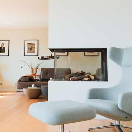 Set the scene for fire and make your three-sided gas fireplace the unmissable centrepiece of your living room. The fire takes centre stage and invites you to relax. The VISIO room dividers are ideal for architecturally separating rooms and at the same time connecting them in a unique way.