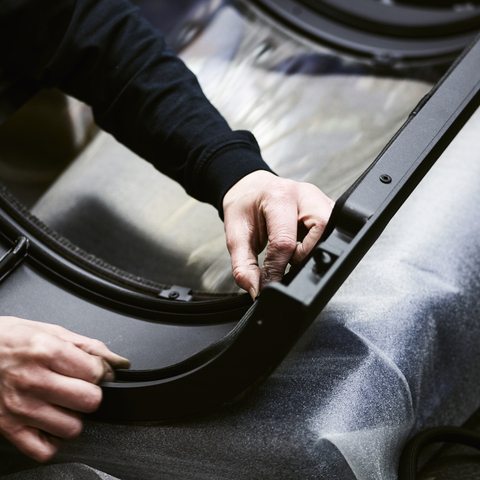 Oak wood handle black in round on a VIVA L with secure door closure SLS Self-Locking-System