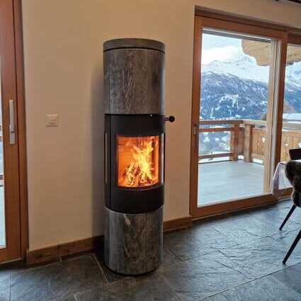 JUNO 166 L is a true master of storage heat. The finely polished soapstone or natural stone panels give off noticeable heat for up to 15 hours and the convection regulator provides quick heat when required. An optional heat-storage module© can be used for even more storage heat.
