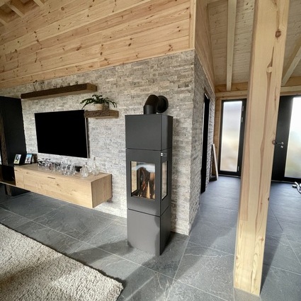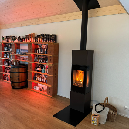 For greater energy efficiency, we recommend the heat-storage module© (50 kg or 75 kg), which stores the heat from the fire and then releases it slowly and cosily into the living space over several hours. The optional side benches also offer hours of cosy enjoyment by the stove.