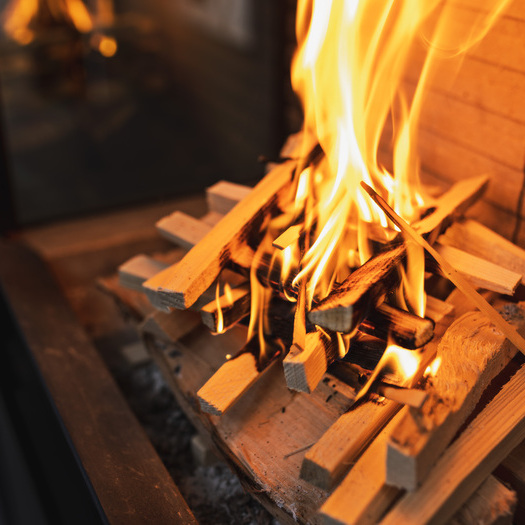 Load your fireplace insert or stove with the right amount of firewood for firing up. Do not overfill the firebox with too many wood logs. You will find the information on the amount of wood in the user manual for your stove. Use natural and dry wood (beech, birch, oak, etc.). The firewood should have a maximum moisture content of 17 per cent. The moister the wood is, the more energy is required to burn it. However, the heat output decreases with very old wood.